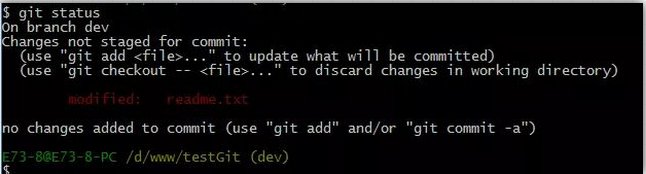 上面的命令告诉我们 readme.txt文件已被修改,但是未被提交的修改。