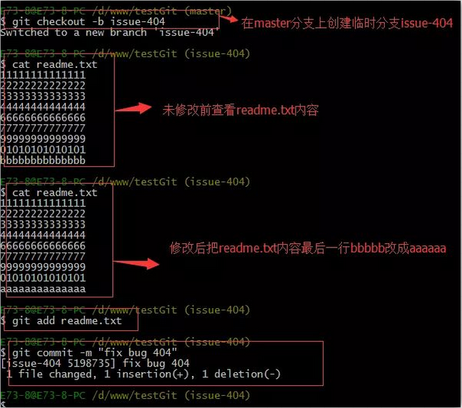 所以现在我可以通过创建issue-404分支来修复bug了。