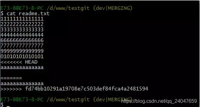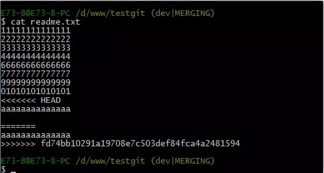 git merge命令用于合并指定分支到当前分支上,合并后,再查看readme.txt内容,可以看到,和dev分支最新提交的是完全一样的。