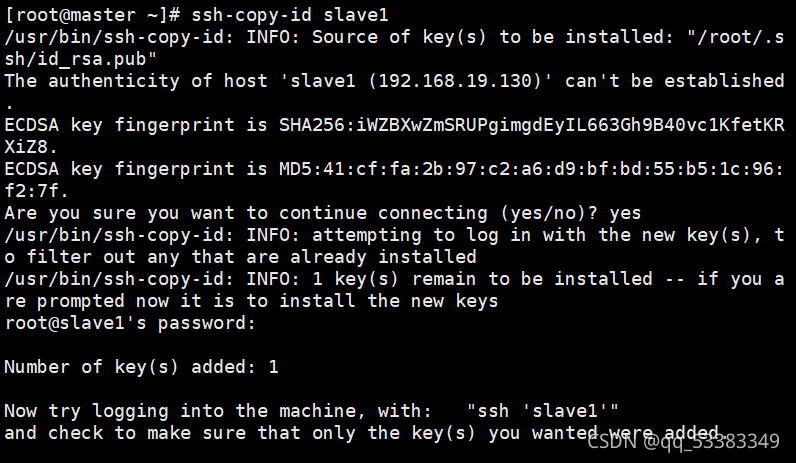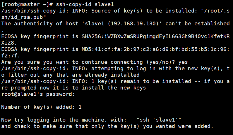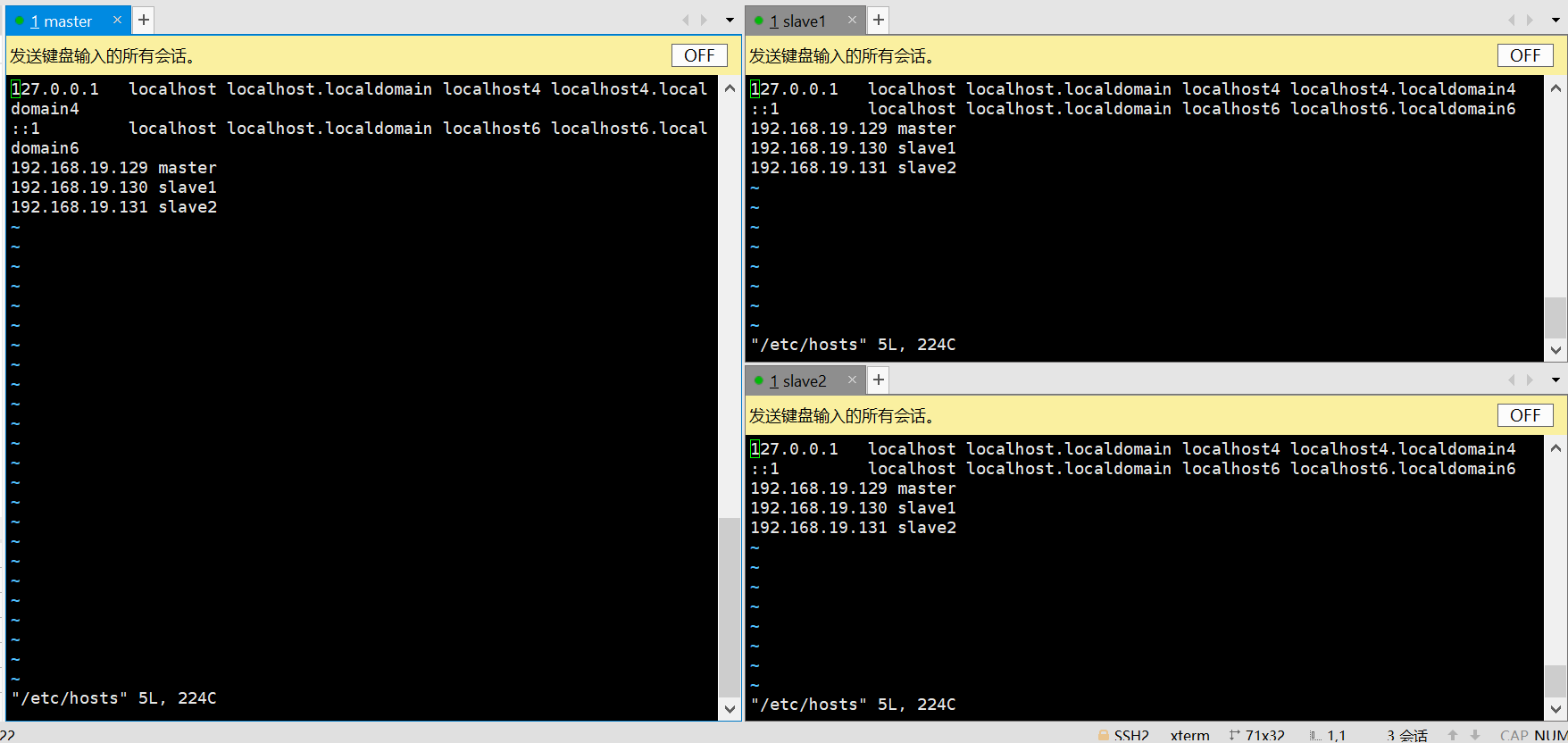 在slave1、slave2上操作类似,仅把主机名修改即可