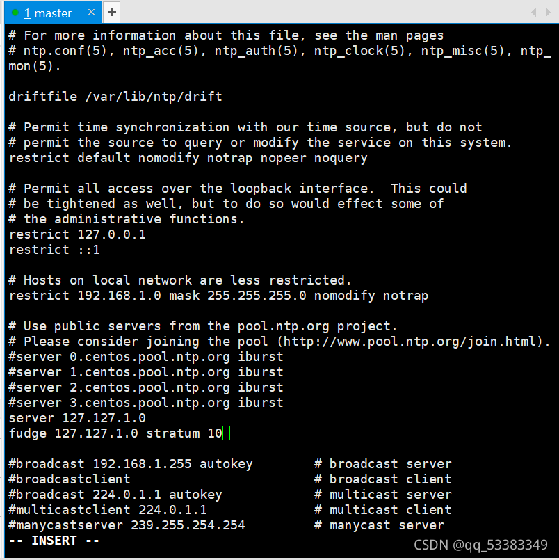 六、屏蔽默认server,设master为本地时钟源,服务器层级设为10