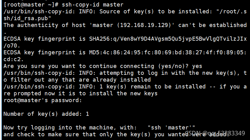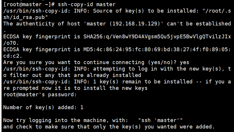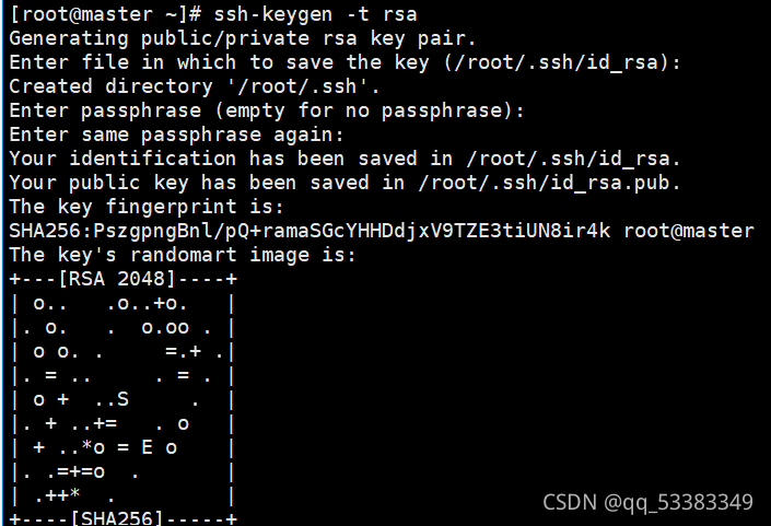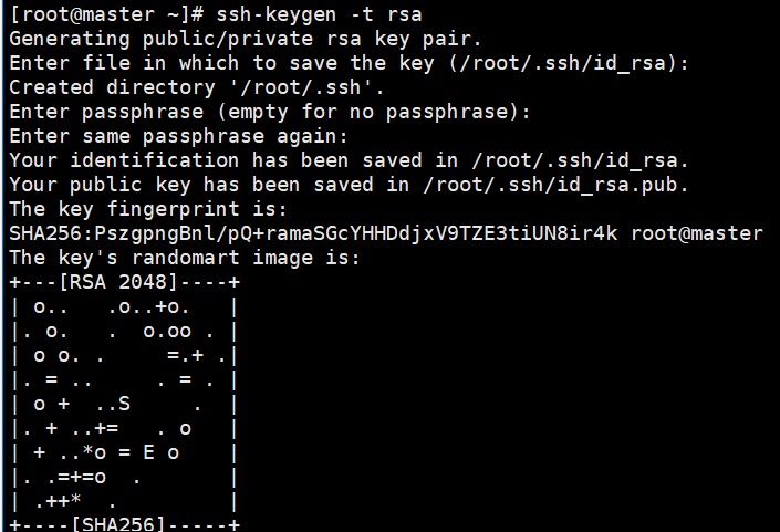 九、主节点生成公钥文件(数字签名RSA,主机名master,用户root)