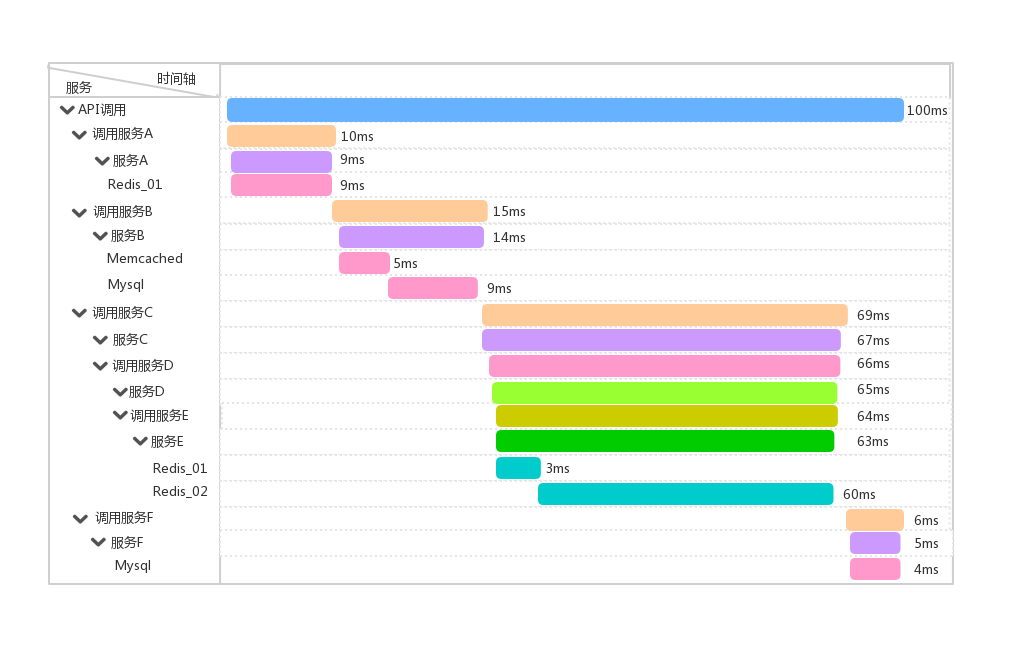链路追踪系统做好了,链路数据有了,借助前端解析和渲染工具,可以达到下图中的效果: