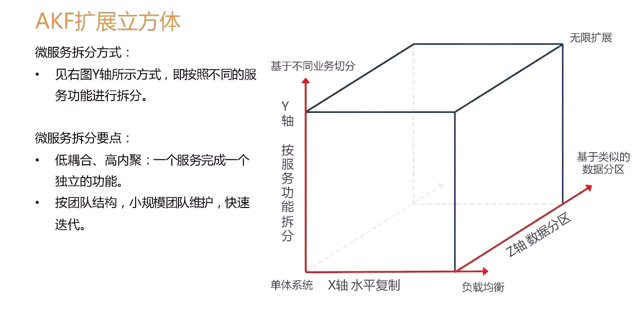 当访问量逐渐增大,单一应用增加机器带来的加速度越来越小,将应用拆成互不相干的几个应用,以提升效率。