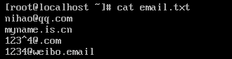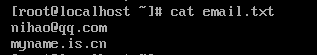 ##完成后ESC + :+ wq 保存退出查看一下当前的email.txt内容