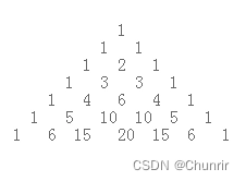 首先把第一行的元素入队。每次循环时,用一个数a来存储前一个数,默认a=0,q.front() 则是当前要处理的数,a + q.front() 即为下一行的元素,将其入队,再将q.front()赋值给a 。没一次循环完后只入队了n-1个元素,所以循环结束后将每行最后一个元素(也就是1)入队