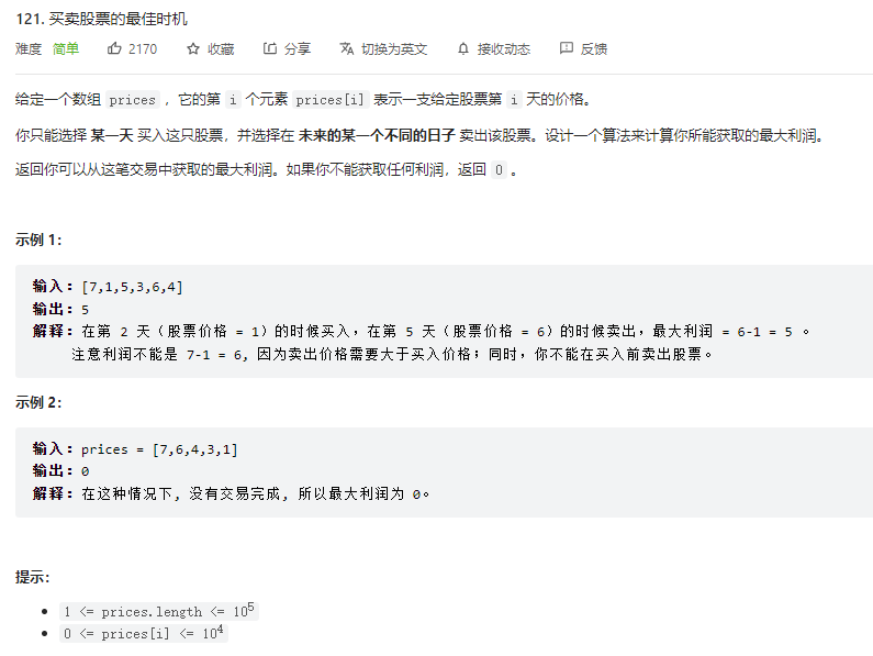 力扣热题100之第121题: