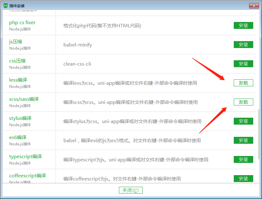 1.打开 Hbuilder x 工具栏-安装插件 选择: 安装scss、 less编译插件和npm插件(如下图)