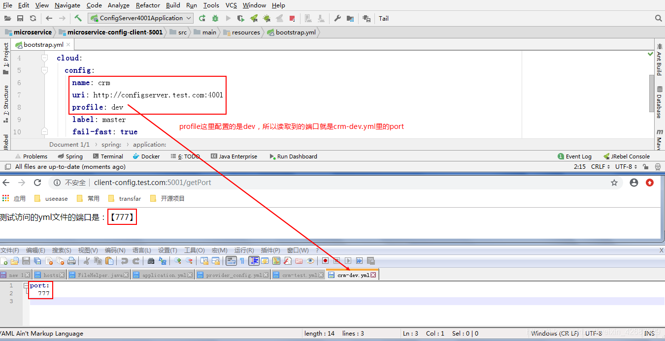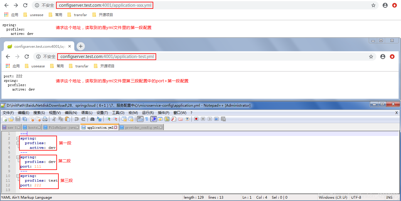 127.0.0.1 configserver.test.com然后只启动这个项目,访问http://configserver.test.com:4001/application-xxx.yml可以读取到配置文件,结果如下: