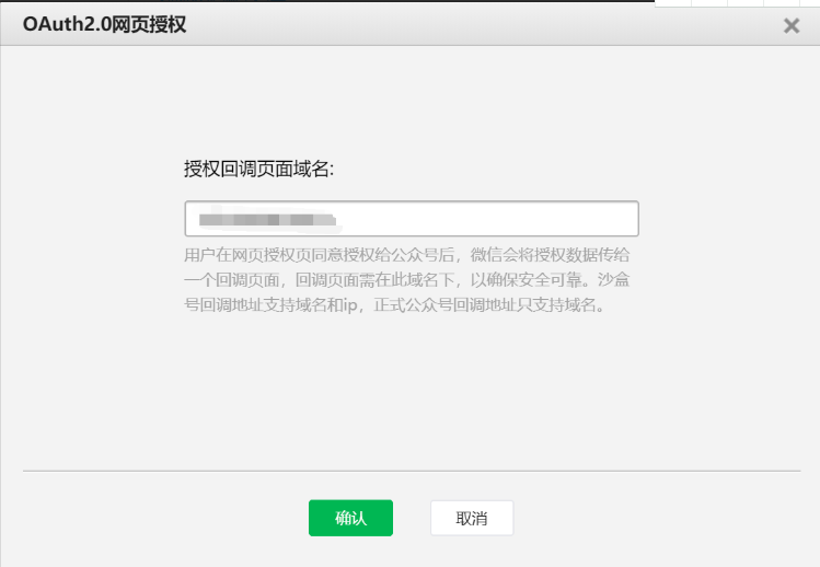 在微信后台管理平台找到开发者工具>> 公众平台测试账号>> 网页账号>> 网页授权获取用户基本信息。点开就可以看到一个提示要求输入授权回调页面域名