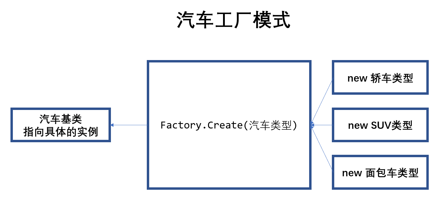 先来看一个生活中的真实的案例,某个品牌的汽车制造工厂,对外提供生产这个品牌的不同型号汽车的服务。外界只要下一个”汽车型号”, 工厂可以根据型号构建出来不同型号的汽车。这样外界不用关心工厂内部是怎么运作的,当用户需要某个型号的汽车的时候调用接口就可以了,同时内部工厂的机制,可以任意的修改,比如增加了一个新的汽车型号的服务等。