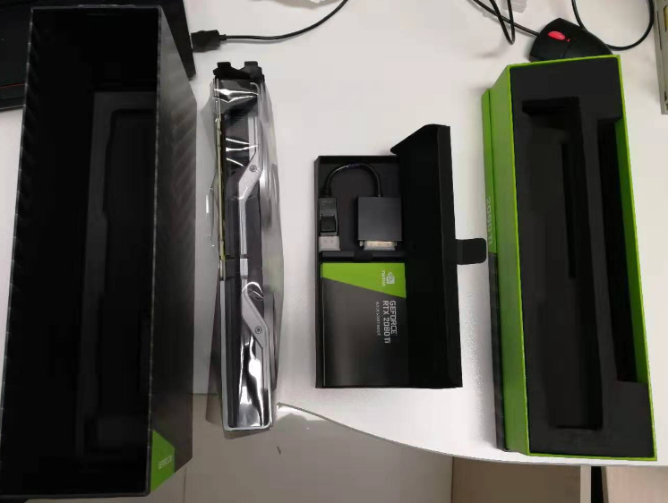 一、硬件环境准备 1. GPU为RTX2080Ti。 为最新款,是18年最好的GPU了,京东价9999一个。买来之后,只有一个GPU、一个转接头和两本小册子,如下: