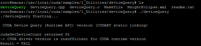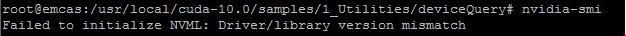 问题二: 当执行他的例子时,遇到下面的问题: 而且,使用nvidia-smi命令也报错: 说是驱动的版本跟不上CUDA的版本,但是我查了一下,版本没有问题。