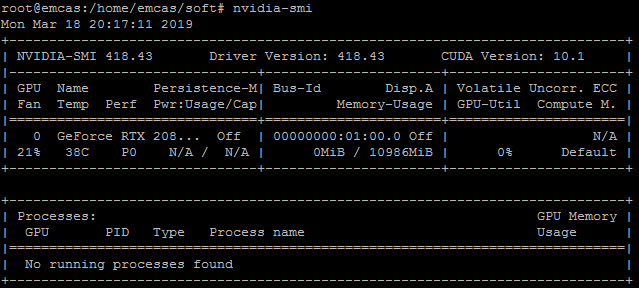 配置: 服务器:联想TS430 linux:ubuntu18.10 GPU:RTX2080Ti CUDA10.0 cuDNN7.5.0 Anaconda:conda 4.5.12 Tensorflow-gpu:1.13.1