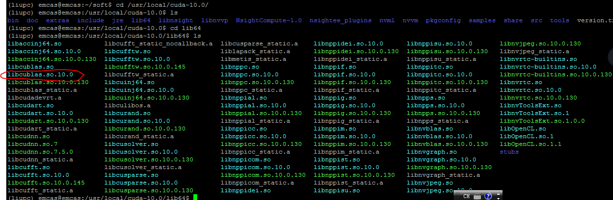 分析:找不到libcublas.so.10.0,于是我到/usr/local/cuda-10.0/lib64下查看,发现有这个文件: