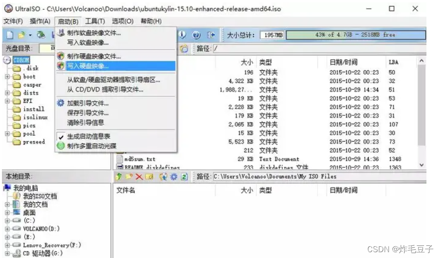 2. 单击启动——>写入硬盘映像;