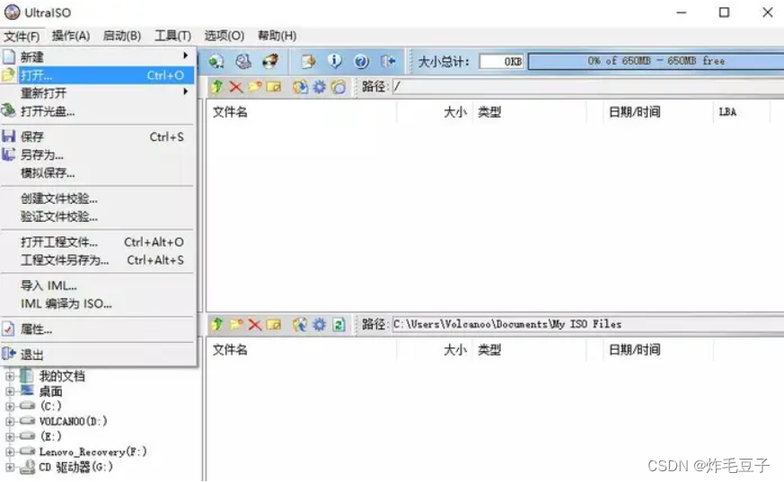 1. 插上已经准备好的U盘,进入UItraISO——>打开文件——>选择下载的IOS文件;