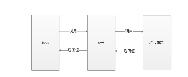 对于一个java开发人员,我完全不知道这俩文件是干啥的,一脸懵逼,开始百度,中间爬过不少坑,网上大部分是通过jna或jni对dll进行解析获取方法,但是对于c#编辑的dll文件,java不能直接读取里面内容,需要通过c++读取里面内容,然后java通过jna读取c++里面方法,调用方向见下图
