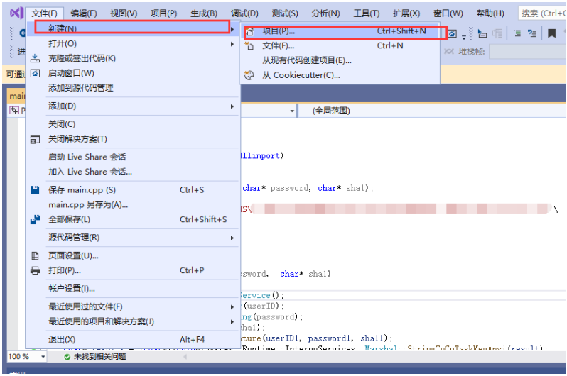 因为c#编译的文件已经给我,本文就不再阐述用创建c#项目过程,直接创建c++项目
