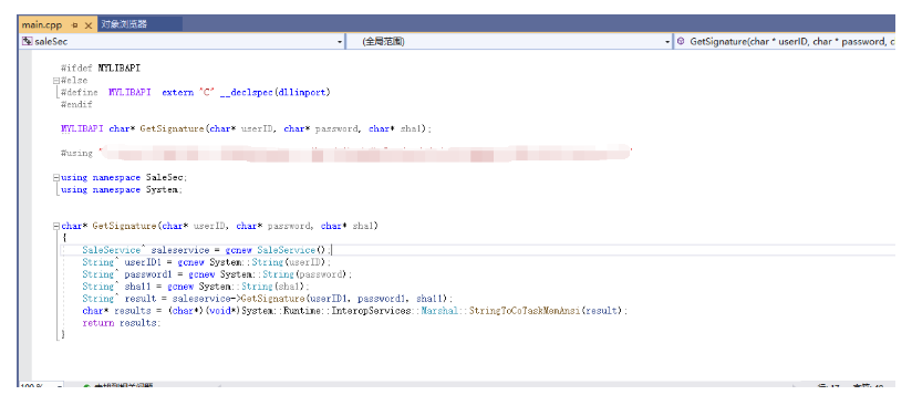 E1767 无法使用给定参数列表调用 函数 "SaleSec::SaleService::GetSignature" SaleSec D:\visio-workspace\SaleSec\dllmain.cpp 23 3. 第三个错误, LNK1104,找不到某个dll文件