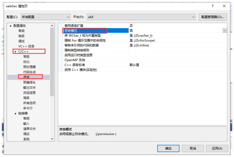 C2338 C++/CLI、C++/CX 或 OpenMP 不支持两阶段名称查找;请使用 /Zc:twoPhase- saleSec D:\visio-workspace\saleSec\c1xx 1