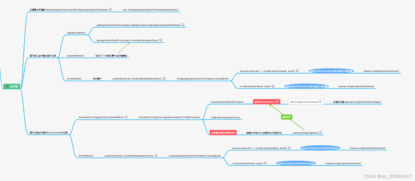 (1)一个是通过监听器,publishEvent(new ContextRefreshedEvent(this)),