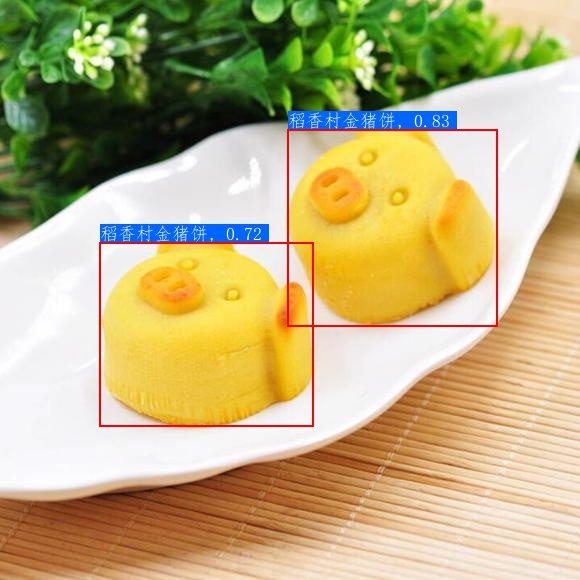 [{'bbox': [287, 129, 497, 326], 'rec_docs': '稻香村金猪饼', 'rec_scores': 0.8309420943260193}, {'bbox': [99, 242, 313, 426], 'rec_docs': '稻香村金猪饼', 'rec_scores': 0.7245652079582214}]