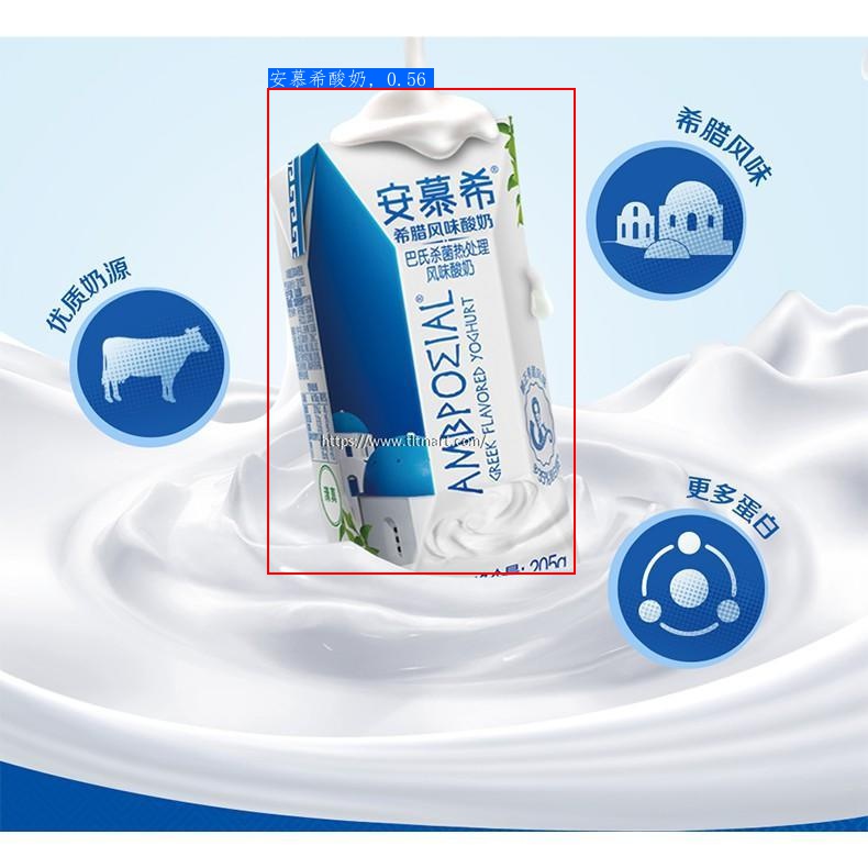 最终识别结果为安慕希酸奶,识别正确,识别结果可视化如下所示。