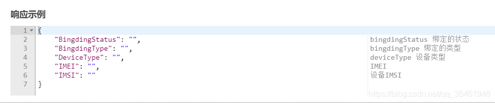 String json = "{\"IMSI\":\"46011338941\",\"IMEI\":\"863119031909662\",\"BingdingType\":\"开通\",\"BingdingStatus\":\"是,匹配成功\",\"DeviceType\":\" Smartphone终端信号(Che1-CL1023) \"}";