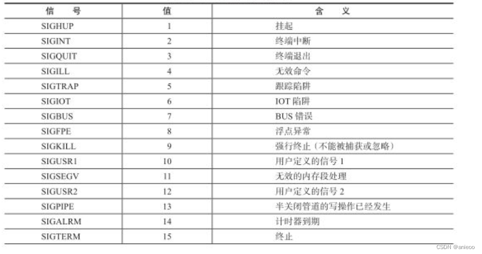 信号可以在进程间进行传递,Linux的异步通知就是基于信号进行实现的。在Linux中可以使用的信号如下所示: