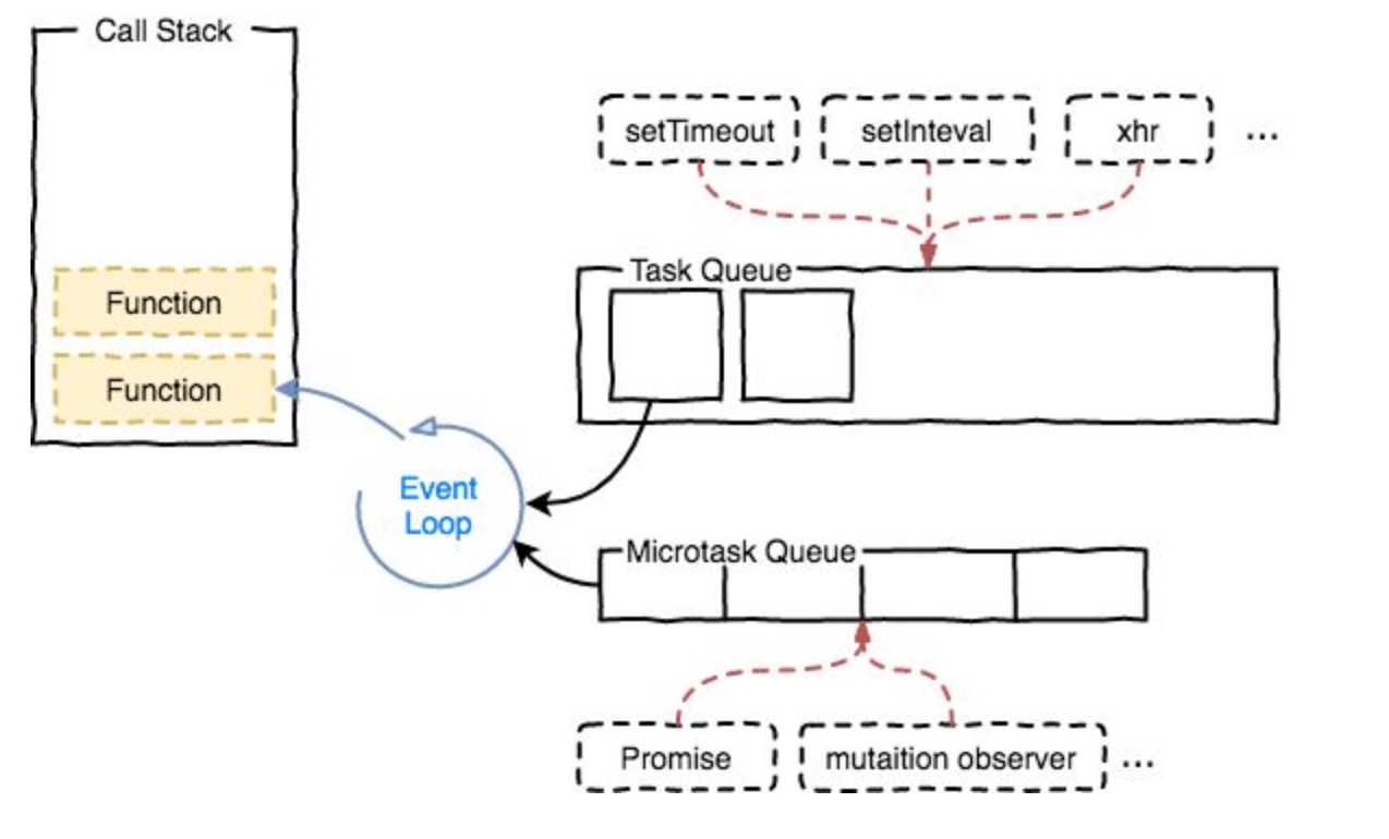 (macro)task主要包含:script(整体代码)、setTimeout、setInterval、I/O、UI交互事件、postMessage、MessageChannel、setImmediate(Node.js 环境)