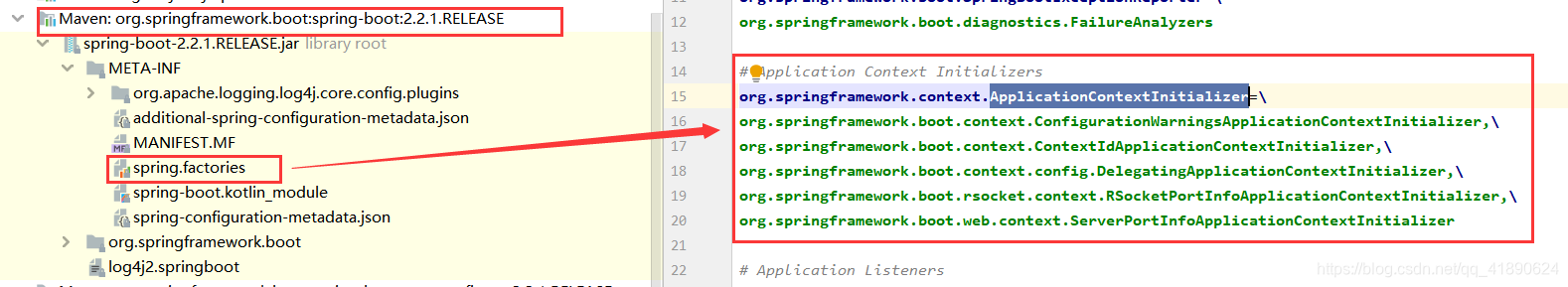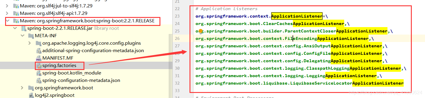 4,setListeners 读取SpringBoot包下面的META- INF/spring.factories获取到对应ApplicationListener装配到集合中