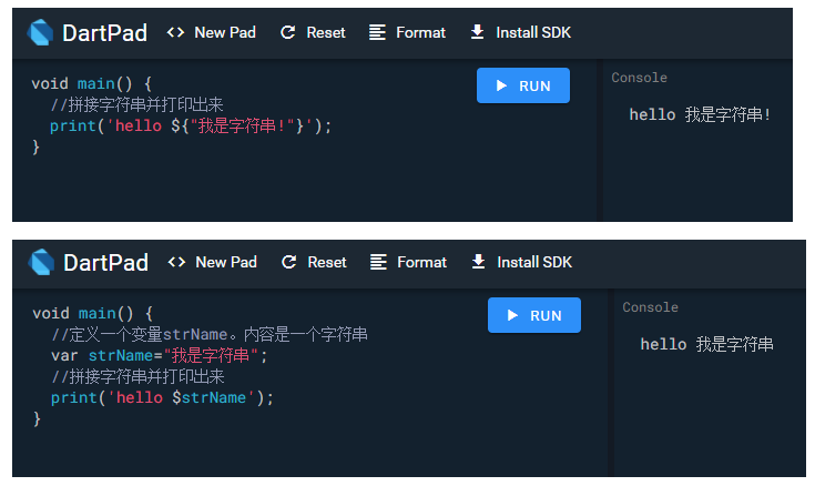 上面的示例是使用在线编辑器dartpad运行测试的.