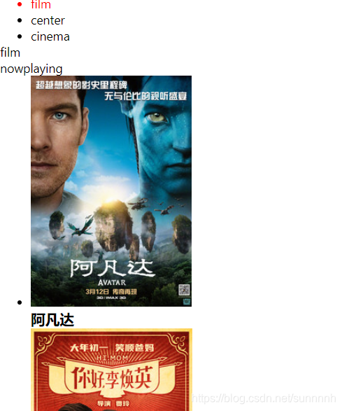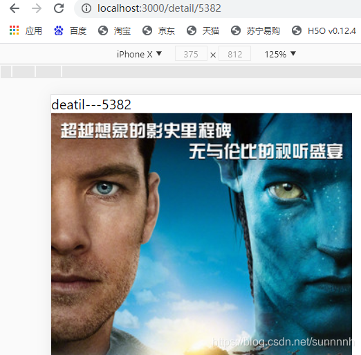 (3)点击nowplaying中的电影,将其详细信息显示到detail页面