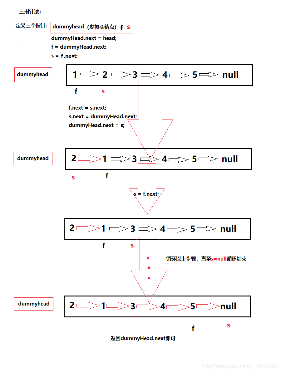 //3.尾部4-5-null中,head=4,head.next=4-5 head.next.next=4-5-null,也就是5的后继指向4