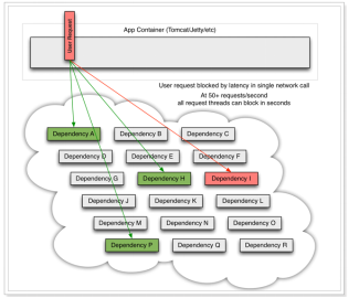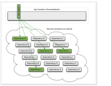 如图,一次业务请求,需要调用A、P、H、I四个服务,这四个服务又可能调用其它服务。如果此时,某个服务出现异常: