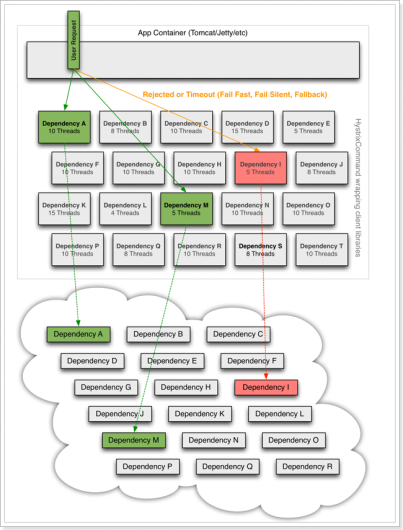例如微服务I发生异常,请求阻塞,用户不会得到响应,则tomcat的这个线程不会释放,于是越来越多的用户请求到来,越来越多的线程会阻塞: