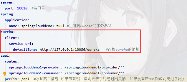 因为已经有了Eureka客户端,我们可以从Eureka获取服务的地址信息,因此映射时无需指定IP地址,而是通过服务名称来访问,而且Zuul已经集成了Ribbon的负载均衡功能。