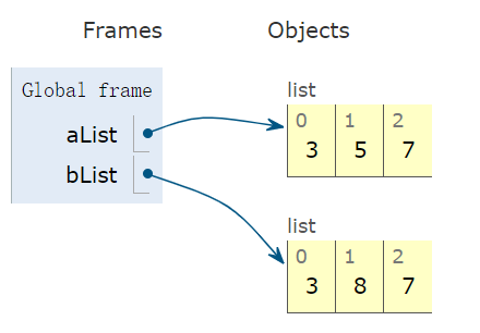 >>> aList is bList