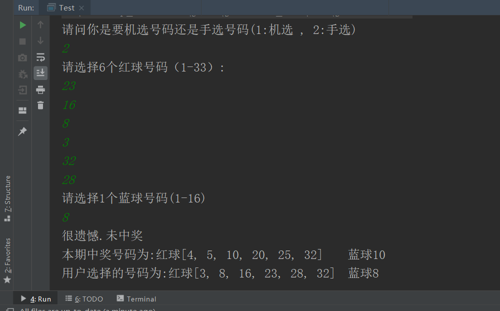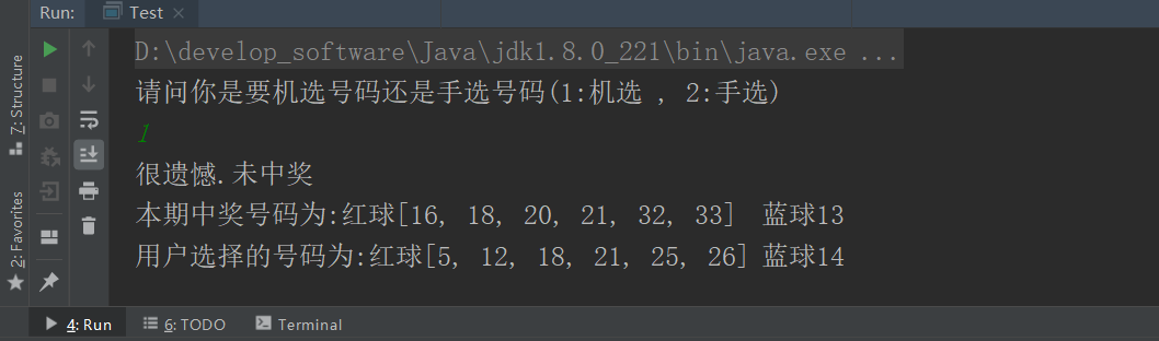 System.out.println("用户选择的号码为:红球"+ Arrays.toString(userRedBall)+"\t"+"蓝球"+userBlueball);