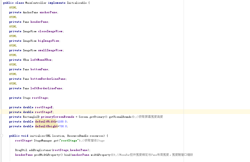 - Controller用于编写FXML的初始化操作和逻辑操作(事件绑定、动态效果等等)