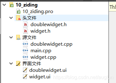 2.在根项目名称中右键----添加新文件----Qt(Qt设计师界面类)----widget再命一个名字doublewidget,自动生成.h和cpp文件