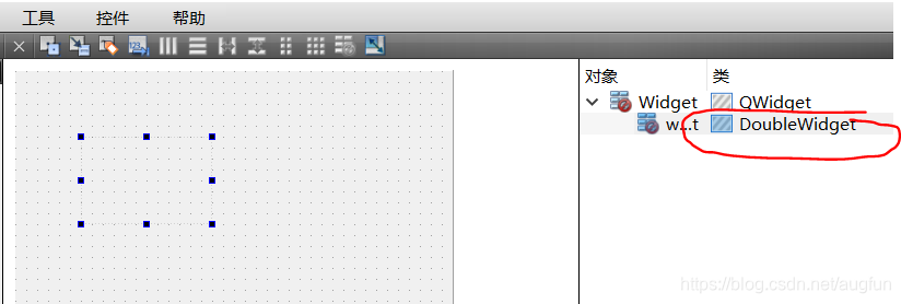 3.在doublewidget.ui中添加想新增的组合控件,注意这两个控件是QWidget的子控件