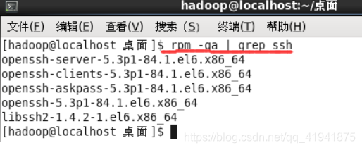 1.集群、单节点模式都需要用到 SSH 登陆(类似于远程登陆,你可以登录某台 Linux 主机,并且在上面运行命令),一般情况下,CentOS 默认已安装了 SSH client、SSH server,打开终端执行如下命令进行检验: