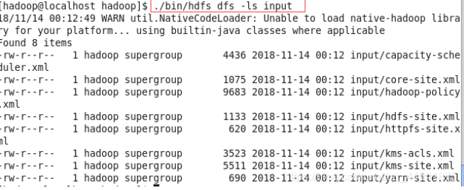 cp ./etc/hadoop/*.xml ./input # 将配置文件作为输入文件