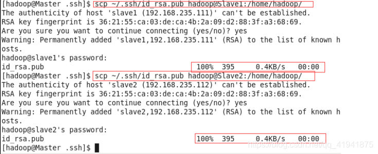 scp ~/.ssh/id_rsa.pub hadoop@Slave1:/home/hadoop/