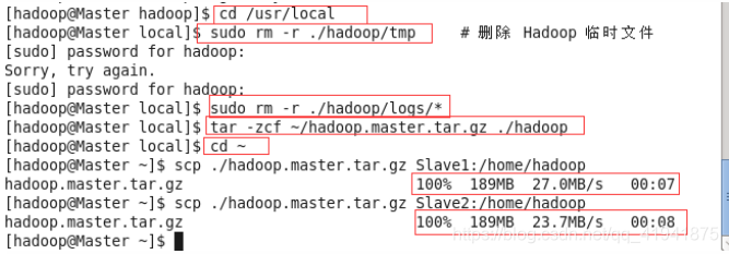 scp ./hadoop.master.tar.gz Slave1:/home/hadoop