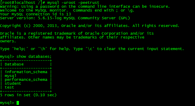 登录数据库mysql-uroot -peetrust