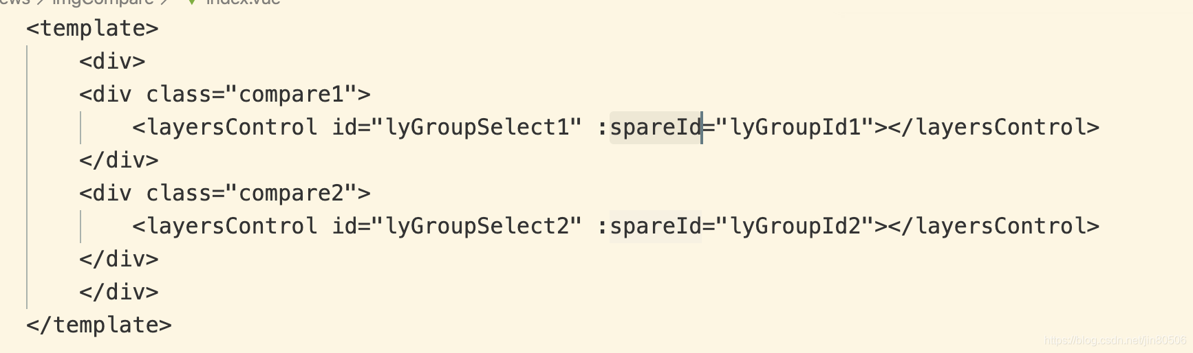首先在引用组件中新增一个props,这里命名为spareId,用来区分二者。