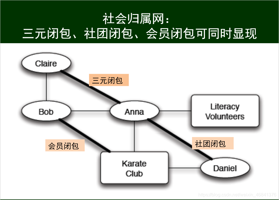 了解并知晓三元闭包,会员闭包,社团闭包的形成,区分这三种闭包